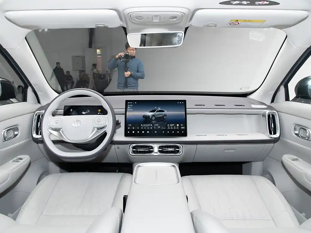 车内也是典型的新能源车设计风格,整体非常简洁,并且屏幕中控屏也很大,尺寸达到了14.6英寸,而且还是一块2.5K屏,内置了8295芯片,科技表现无需多言。此外,新车的一大看点就在于中控台可自定义,不过笔者觉得这个还是有点噱头。配色方面,新车拥有竹影灰和萝蔓紫两个配色,笔者更推荐前者,因为紫色看着有点过于压抑了,当然配色还是看自己的喜好。
